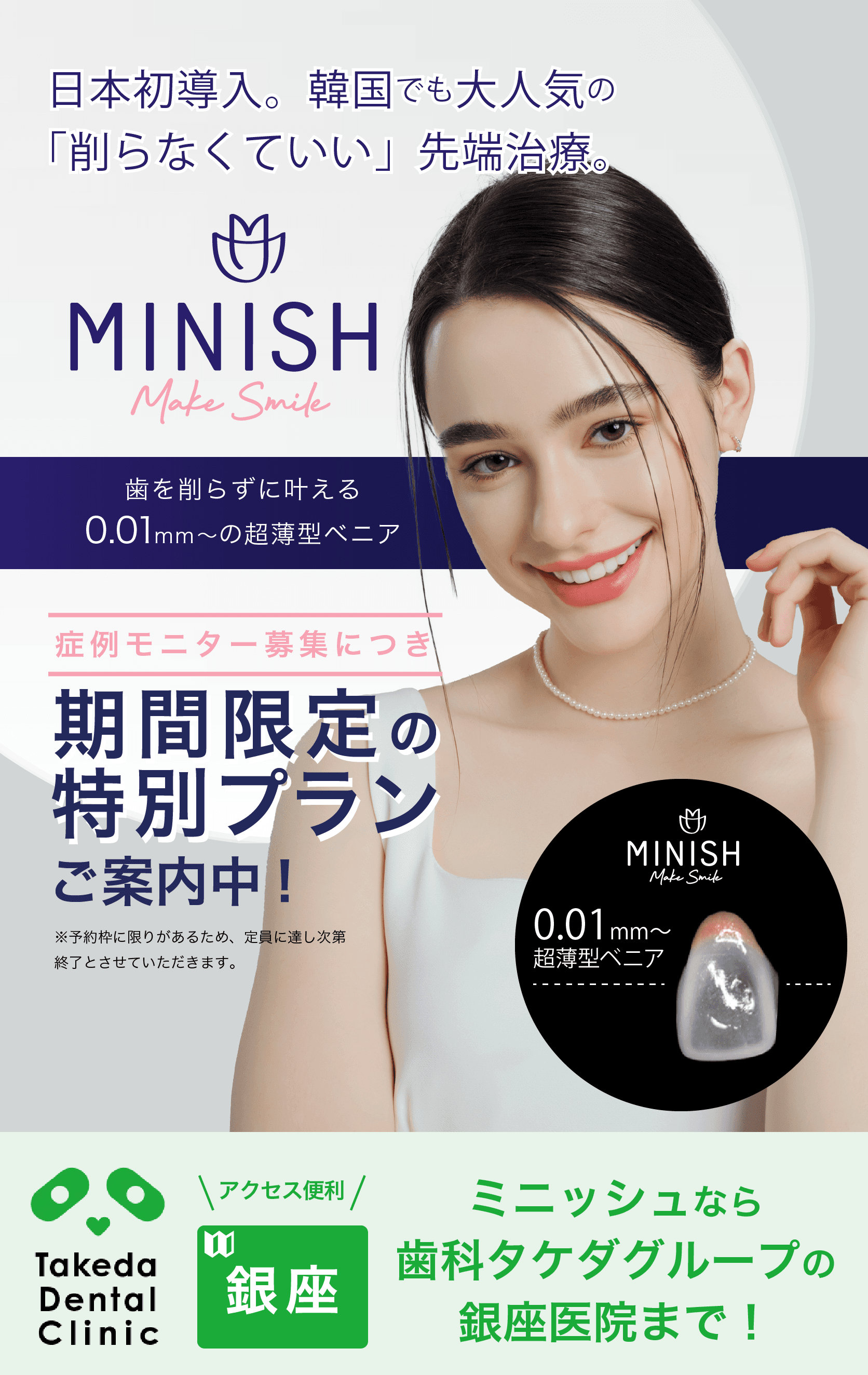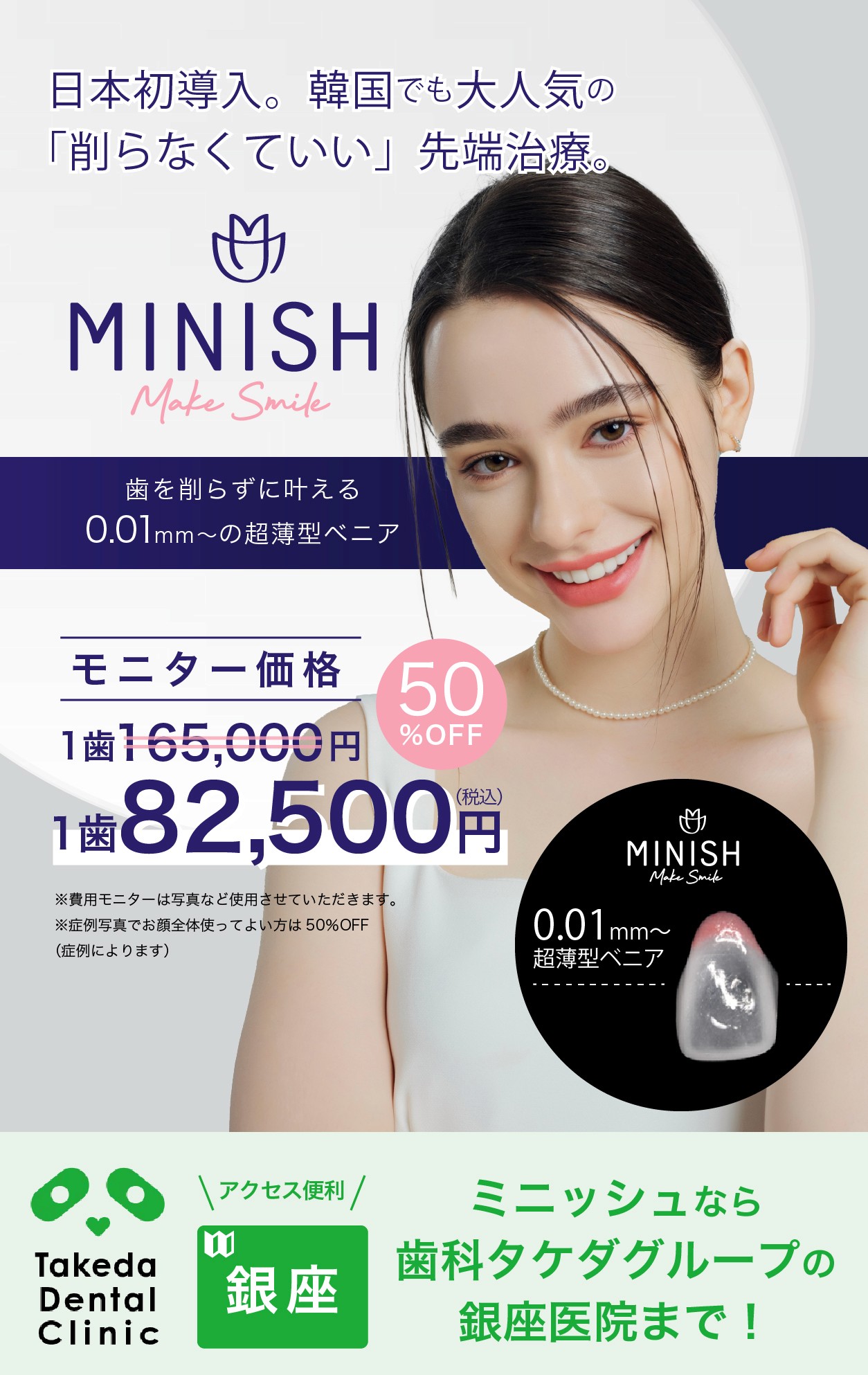 歯科タケダクリニックは、韓国で注目を集める審美技術「MINISH(ミニッシュ)」の認定クリニック(MINISH Provider)です。